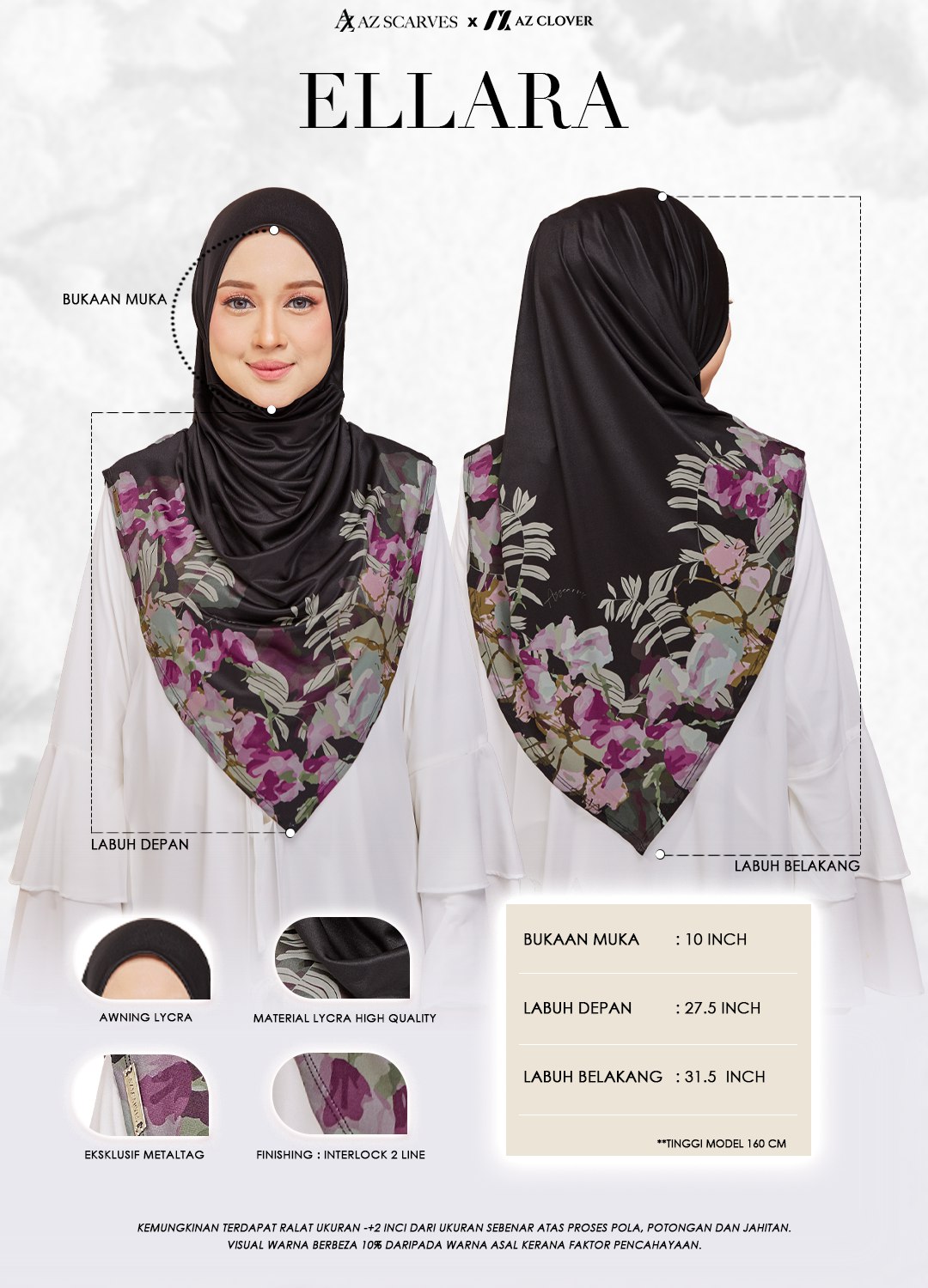 Sarung Printed Awning : Lycra Berkualiti Tinggi Material : Lycra Berkualiti Tinggi Eksklusif : Metal tag Finishing : Interlock 2 Line Ukuran Free Saiz : Bukaan Muka : 10 inci Labuh Depan : 27.5 inci Labuh Belakang : 31.5 inci Nota: 1) Model Berketinggian 160 cm. 2) Kemungkinan terdapat ralat ukuran +/- 2 inci daripada…