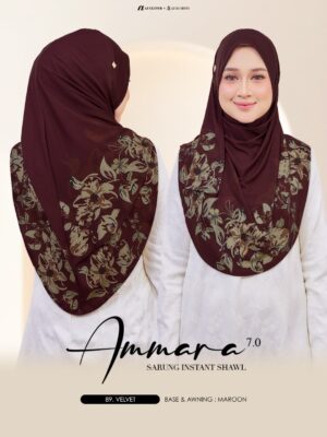 Tudung Sarung Instant Shawl Ammara Printed Semudah 1,2,3 untuk memakainya dan tidak perlu digosok. Yess, kami memahami keperluan CikPuan yang nak bergaya serta menjimatkan masa. Material Awning: Scuba Body: Customade High Quality Lycra Ukuran Bukaan Muka: 10 – 10.5 Inchi Labuh depan : +- 28 Inchi Labuh Belakang : +- 31 Inchi