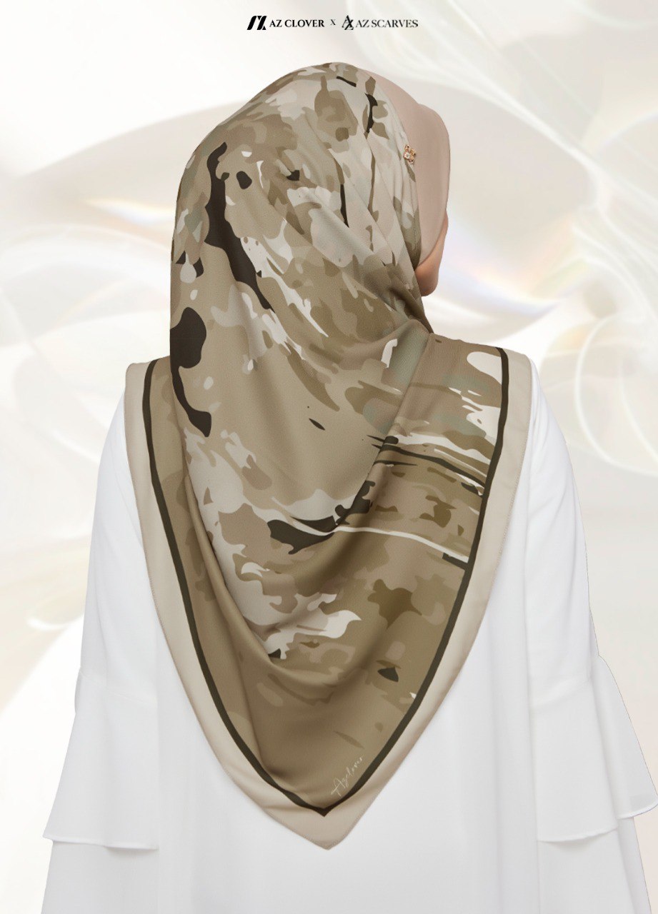 2) Model menggayakan Bawal Clarabelle Bidang 45 dan berketinggian 165cm