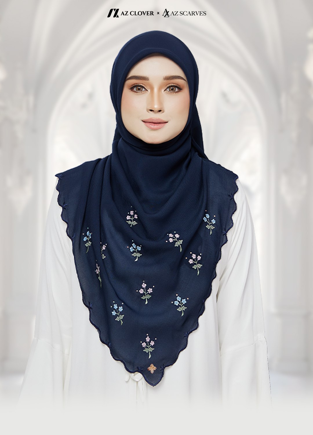 2) Model menggayakan Bawal Sulam Srikandi dengan ketinggian 160cm.