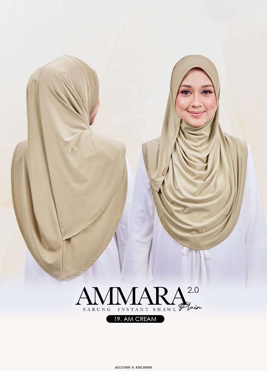 SARUNG INSTANT SHAWL AMMARA PLAIN 2.0 – 19 AM CREAM