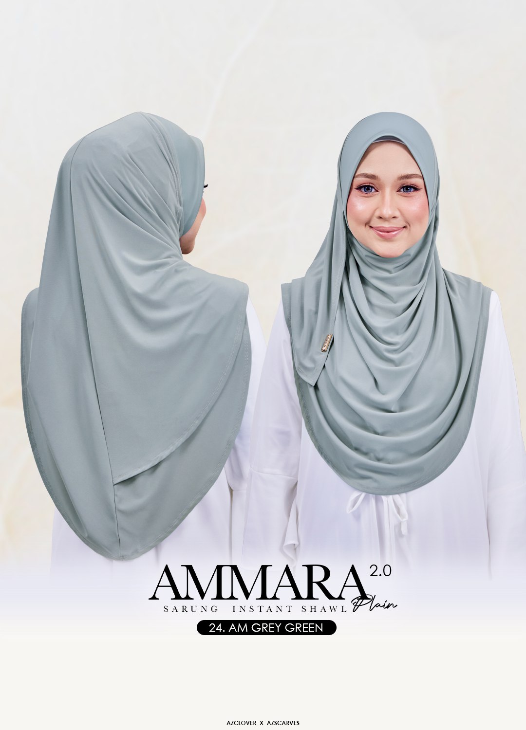 SARUNG INSTANT SHAWL AMMARA PLAIN 2.0 – 24 AM GREY GREEN